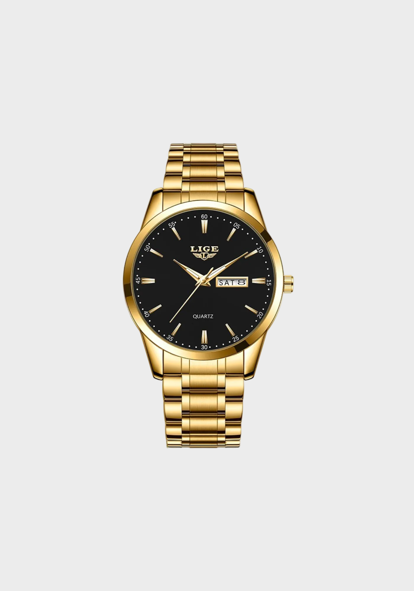 Imponente, sofisticado e atemporal. O Relógio LIGE Dourado foi desenvolvido para homens que apreciam elegância marcante e presença forte no visual.