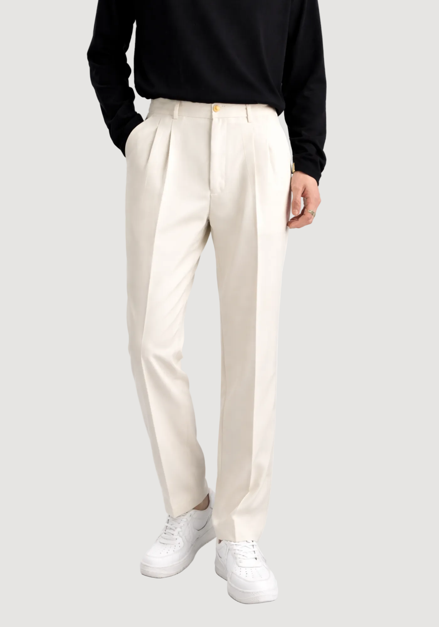 Ideal para composições elegantes e modernas. Combine com camisas minimalistas, polos ou tricôs leves. Perfeita para looks monocromáticos.